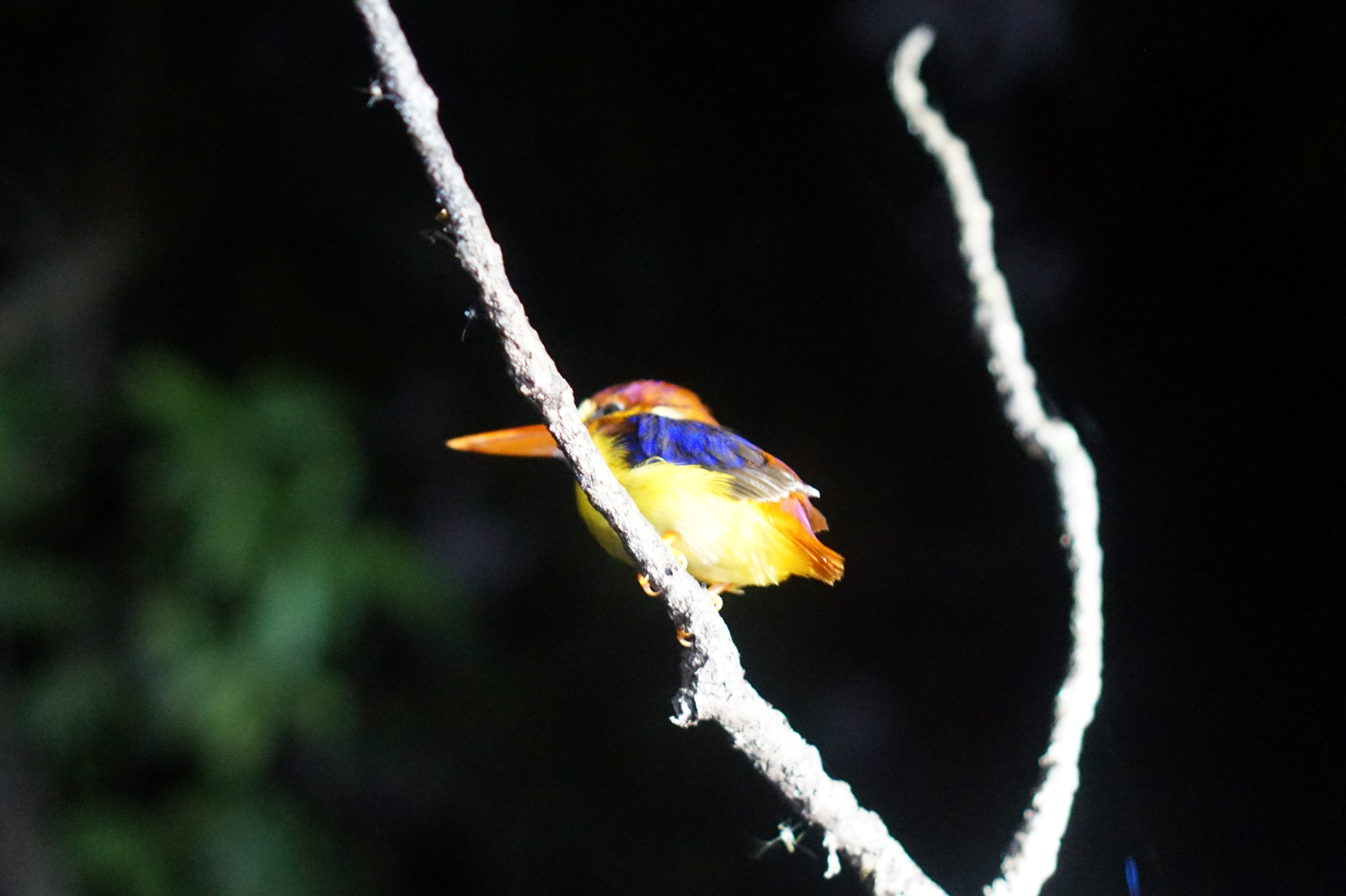 By night we did a jungle walk from the lodge we were staying at. Donning the leech socks (attractive but necessary) we waded through the mud, seeing a variety of animals including, much to the excitement of the local guides, a very rare wildcat called a Banded Linsang. My photo isn’t great, but it was pretty cool.