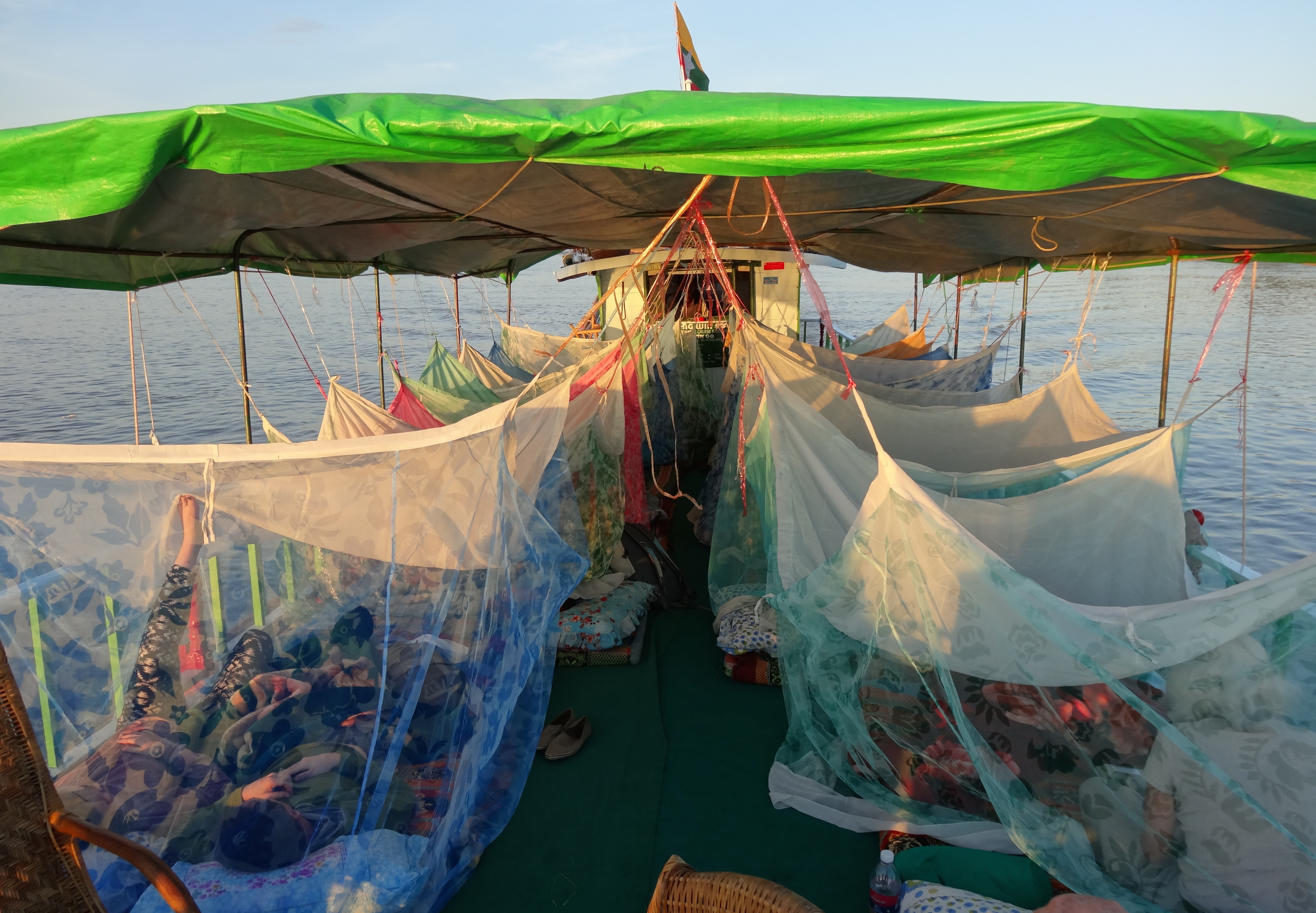We moored up for the evening along a deserted bank and spent the night sleeping under the stars, at which point my supreme ability to overthink things struck again. I was woken around 2 a.m. by the sound of a couple of boats coming up alongside ours with men jabbering away to each other in Burmese as they flashed their torches along the length of our boat. Pirates, obviously. After they moved on, I fell back asleep and had such a vivid dream about having our belongings stolen whilst being assured no one was going to get hurt that I had to properly wake myself up before I could accept it wasn’t really happening. (In my defence, I would like to point out that I was not the only person slightly perturbed by this early morning visitation. We were assured the next day that it was just local fishermen but I still reckon we all looked so rough under our mosquito nets that they decided we weren’t worth kidnapping).